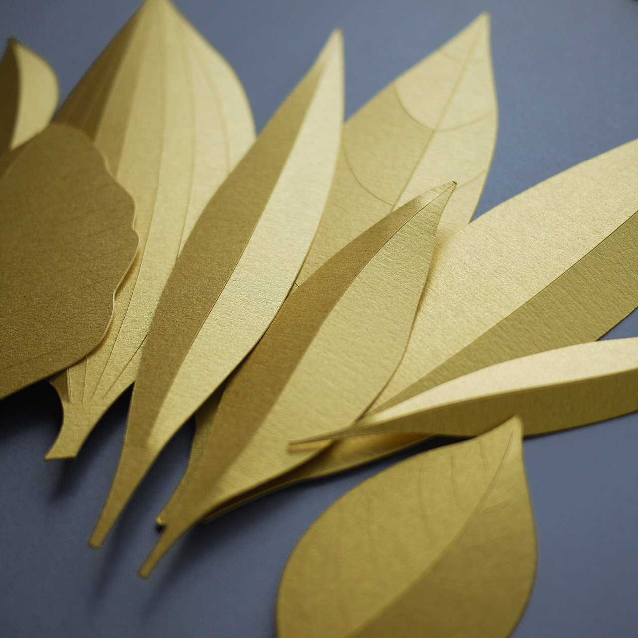 Voilà une solution vraiment pratique et visuellement très efficace : notre nouveau kit de 30 feuilles différentes, découpées dans une seule couleur. Les rainures sont légèrement pliées, ce qui donne une peu de volume et un aspect "bas-relief", qui accroche bien la lumière. C'est très beau.
